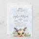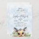 Inverno Neve Fria Fora do Convite para Veados de Chá de fraldas Azul. Escrita moderna, tipografia de tendências e um fundo azul de neve com veados adoráveis e verde de férias fazem do Bebê perfeito o tema Frio Exterior. Entre em contato conosco para obter solicitações personalizadas em simpledesertdesigns@gmail.com!