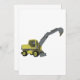 Um veículo de construção verde com um braço de escavação estendido. Este design parece realmente eficaz nestes Convites