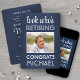 Olha quem está se aposentando! Convide colegas, colegas de trabalho, familiares e amigos para uma celebração especial de aposentadoria com convites de festas de fotos elegantes e personalizados. O quadro e toda a redação desta modelo são simples de personalizar. (DICA DE IMAGEM: Uma maneira fácil de posicionar uma foto exatamente como você deseja é recortá-la antes de carregá-la no site do Zazzle.) O moderno design azul e branco marinho apresenta uma foto da aposentada, um fundo azul-escuro ombre, caligrafia com na moda e tipografia clássica com vintage art deco. A design neutra do ponto de vista do gênero também é adequada para um homem ou para uma mulher. Saúde, Parabéns e boa aposentadoria!