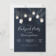 Convites de festa no quintal com jarros de pedras com velas penduradas e um céu noturno cheio de estrelas celestiais. Ótimo para formatura, aposentadoria, aniversário, chá de bebê, festa de noivado ou qualquer festa ao ar livre no quintal! Fundo azul escuro de aquarela com estrelas espalhadas.