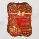 Um convite elegante para festas de férias com uma árvore de natal dourada, arco, confete, velas em fundo vermelho. Estes belos convites de Natal são perfeitos para convites de festas de janto de Natal, convites para troca de presentes de Natal, angariadores de fundos de Natal, convites para bolas de férias e outros eventos realizados durante o mês de dezembro. Use apenas os campos modelo para adicionar suas próprias informações de evento.