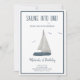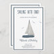 Velejando Em Um! Convite de aniversário náutico minimalista com um belo veleiro e gaivotas. Personalize com seu nome e data e aproveite a sua festa de marinheiro.