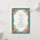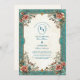 Entra na elegância do eterno com esta vintage teal e design de casamento floral de ouro. Com quadros arquitetônicos de ornamentado, rosas ouros florescentes e padrões de turquesa intrincados, este design é perfeito para casais que adoram uma estética romântica rica. Os tons quentes de vintagem, aliados ao detalhado trabalho de arte floral, criam um sentimento luxuoso e sofisticado, ideal para comemorações formais e de destino.