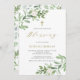 Veneração em Aquarela e Flores Brancas Convite para Bênção Bebê | Convide familiares e amigos para o seu evento com este convite de bênção personalizável. Apresenta ilustrações de aquarela e padrão de folhagem e flores brancas. Este convite floral é perfeito para as bênçãos de primavera e jardim.