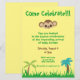 Venha celebrar sua chegada iminente com este convite de chá de bebê neutro em gênero. Situado em um fundo amarelo, este design apresenta um macaco e palmeiras. A fonte é verde e marrom. Faça seu pedido hoje!