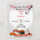 Venha conosco aniversário de Sushi Convite com sushi fofo e flores de cereja japonesa