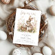 Procurando uma maneira doce e elegante de convidar seus entes queridos para um brunch de Páscoa? Não procure mais do que este convite de Páscoa em aquarela, apresentando um coelho encantador cercado por uma variedade colorida de flores silvestres e uma cesta cheia de ovos. Com um design moderno e atraente, este convite é a maneira perfeita de dizer "venha se juntar" e se juntar a nós para uma deliciosa celebração da primavera.