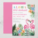 Convite de Aniversário Tropical Summer 1st Flamingo Onederland apresenta um design tropical vibrante com folhas verdes exuberantes, flamingos rosa e flores coloridas em um fundo branco. O título divertido "ALOHA ONE-derland!" define o tom alegre, com espaço para nome personalizado e detalhes da festa.