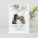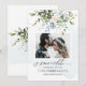 PixDezines verde e flores aquáticas flores azuis poeira com Eucalipto azul, cartões de data de salvamento de fotos.