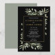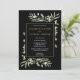 Projetado para coordenar com a nossa coleção de casamentos do Soft Primavera Leaves. Apresentando delicadas folhas de aquarela em um fundo preto com uma borda de ouro em chic moldando seus detalhes de celebração. Você pode personalizar adicionando suas informações de chá de casal, com um fundo de sábio prateado no verso. Projetado por Thisnotme©