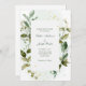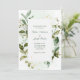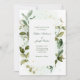 Estes convites de casamento botânicos e trendy apresentam luxuosas, folhas verdes a aquarelas e sotaques elegantes de ouro falso. Há também a caligrafia moderna e o texto clássico, e sutis sulcos de aquarela verde reproduzem o fundo branco.