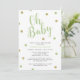 Convites neutros do chá de fraldas da surpresa do verde & do género Dourado do chá de fraldas do brilho oh
