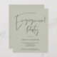 Um valor para o alternativo do ORÇAMENTO em tamanho menor de 4,5 x 5,6" de semirbrilho de 110 lbs, que é de espessura semelhante a um cartão postal (no entanto, não é adequado para uso como cartão postal). POR FAVOR, OBSERVE QUE HÁ UM convite por folha. Festa de noivado de Convocação Verde de de Convocação de Script Manuscrito com o design minimalista contemporâneo com a Festa de noivado de cabeçalho principal em um conjunto de caracteres de na moda castanho escuro e o resto do texto que você pode personalizar facilmente. Você também pode alterar a cor e a fonte do texto editável, se desejar, por meio da opção Clique para Personalizar mais.