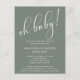 Chá de fraldas Moderno do Script Sage Green Invitation - Um design simples e moderno e minimalista que apresenta Oh Baby! em uma fonte moderna, de script.