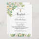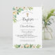 O convite para o Batismo Elegante com elegante cor d'água verde detalhes florais e elementos caligráficos modernos escritos à mão, tanto na frente como no verso. Sexo Convite neutro, ideal para batismos de menina ou de menino. Volte com um quadro moderno estilo logo com o nome do batismo e a data do seu filho. Folhagem de cor aquosa refinada, flores e cruz numa bela mistura de tons verdes, brancos, amarelos, cinzas e dourados. Estilo elegante, moderno e novo. Coleção com coordenação de produtos disponíveis.
