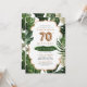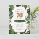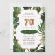 Convite de 70 moderno, com folhagem tropical de cor aquosa verde, com acentos de folha de cobre falsos. Perfeito para uma festa de aniversário tropical, de praia ou de jardim. Itens correspondentes e outras idades disponíveis.