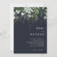 Nós projetamos este Folha Dourada e verde | Convite de casamento de Marinho escuro para completar seu simples e elegante casamento de boho. Apresenta folha de eucalipto verde e branca moderna, folhagem de fêmur, flor suculenta e folhas de folha de ouro mínimas. Esses elementos dão a sensação de uma floresta encantada de aquarela branca, perfeita para qualquer casamento rústico e boêmico! Sinta-se à vontade para personalizar e torná-lo seu; também, sinta-se à vontade para procurar o resto da coleção por produtos de correspondência e coordenação!