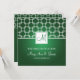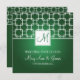 O casamento elegante "economias design da data" com monograma e treliça modela o motivo esmeralda verde, nomes feitos sob encomenda e texto da data. Imprima seus família e amigos com este design à moda e moderno.