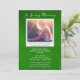 Convite da cerimonia comemorativa em uma cor verde esmeralda profunda, caracterizando uma foto da sua amada. Em memória loving é escrito na parte superior em um roteiro bonito da caligrafia.