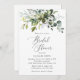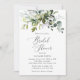 Convide amigos e família de estilo e dê o tom para o seu dia especial com este chá de panela encantador. Design apresenta folhas de eucalipto e verde em fundo branco.