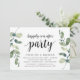Convite de casamento moderno rústico com eucalipto verde, tema de letra preta (com título do cartão: Festa Feliz para Sempre). É perfeito para o seu casamento às escuras / festa de celebração pós-casamento. Adicione seus detalhes em fonte / letra preta correspondente.
