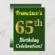 Convite Verde, Faux Dourado 65º aniversário Celebração + N