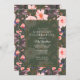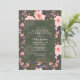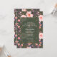 Elegante, vintage inspirou convites de festas de aniversários com um padrão floral cor-de-rosa pincelado sobre um fundo verde escuro. O texto é totalmente editável e pode ser alterado para qualquer evento.
