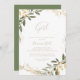 Este verde-ouro geométrico é um convite para chás de fraldas de menina é perfeito para um chá de fraldas ou borrão moderno. A design apresenta uma bela estrutura geométrica dourada com folhas verdes elegantes.