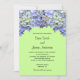 Este convite para o casamento mostra uma foto de hídrangas roxas num fundo de verde limão. A cor de fundo pode ser alterada escolhendo o botão personalizá-la.