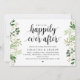 Cartão de convite temático de letra preta com folhas verdes rústicas modernas de verão (com título do cartão: Antes de Felizes para Sempre). É perfeito para a celebração da sua festa de ensaio de casamento, antes do seu melhor dia. Adicione seus detalhes na fonte / letra preta correspondente.