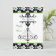 Convites verdes, pretos, e brancos bonito do casamento do candelabro no tamanho da polegada 5x7, fácil personalizar com todas suas cerimónia de casamento e informação da recepção antes de pedir. Nós temos os cartões wedding de harmonização de RSVP, etiquetas, obrigado notas, imã salve o dia, e muito mais.