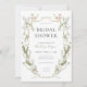 Planejar um chá de panela floral rústico? Comece com delicados convites de chá de panela de flor silvestre e verde, que são a forma perfeita de celebrar a noiva com um tema de chá de panela de tema floral. Esses delicados convites para chás de casamento florais são personalizáveis, então você pode adicionar todos os detalhes sobre o chá de panela floral rústico. O chá de panela floral rústico de ARANYA apresenta um design clássico com fundo branco e flores delicadas de cor d'água e verde florestal na coroa, combinado com fontes manuscritas e fontes serif elegantes em uma cinza verde e escura para acrescentar interesse visual aos seus delicados convites para chás de panela de coroa floral. Este chá de casamento verde rústico convida a dar o tom ao seu chá de panela floral.