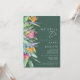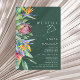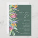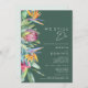 Este verde floral tropical colorido que ainda fazemos é perfeito para o seu destino de boho moderno, verde, púrpura, renovação do vale de pêssego. Design apresenta um buquê elegante de verde-aquarela de praia clássico e flores, incluindo eucalipto verde-sábio, mauve e proteína vermelha, hibisco rosa-pincel, pássaro-laranja e azul do paraíso e folha de palma verde-escura. O design é ideal para um simples, criativo, único casamento de viagem para primavera, verão, outono ou inverno! Por favor, encontre outra papelaria de casamento no resto da coleção.