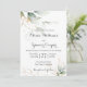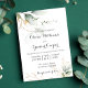 Este convite elegante e moderno de casamento inclui o verde, folhas pintadas com aquarelas e folhas falsas de folha de ouro.