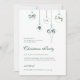 Ornamentos bálidos de monograma verde de inverno, convite de festas de Natal com letra elegante. Designs de ornamento em branco com monograma verde pendurado. Personalize com seus nomes iniciais e informações de sua parte na fonte de script verde e na letra de serif. Verdinho para trás. Projetado para combinar com nossa coleção de monogramas verdes de Natal de inverno.