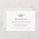 Elegantes cartões de recepção de casamento em aquarela apresentam uma ilustração de ramo folhoso terroso verde e bege no topo. Personalize com os detalhes da recepção do seu casamento, horário, local e endereço em letras verde-oliva discretas. Os cartões de resposta têm no verso um padrão de treliça de diamante sutil em verde-oliva e branco. Projetado para coordenar com nossa coleção de casamento botânico Greenery.