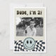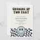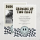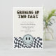 convite de festas de segundo aniversário com tema legal e divertido para crianças, com estilos retrorreflectores Legal com padrão verificado e face felizO texto diz "Crescendo dois rápido". Perfeito para uma festa de aniversário de menino. com ilustração de um padrão de verificação preto e branco antigo. O texto diz "crescer duas vezes rápido".