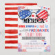 Convite Vermelho Branco e Azul Patriótico Pequeno Fogos de