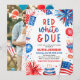 Prepare-se para comemorar seu fogos de artifício com este convite para fotos de chá de fraldas vermelho, branco e devido, neutro em relação ao gênero! Bursting com charme patriótico, esta design divertida e festiva apresenta detalhes ousados, vermelhos, brancos e azuis — perfeito para o chá de fraldas de 4 de julho ou verão. 🍼 ✨ É uma maneira excitante de juntar entes queridos e honrar os próprios pais no estilo da Americana. ❤️ 💙 fácil de personalizar e impressão — uma maneira inesquecível de comemorar uma estrela! 🎉 💥