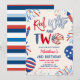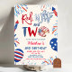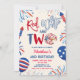 Convite de Aniversário Patriótico Vermelho Branco e Dois, Convite de Aniversário Infantil Temático Americano, 2º Aniversário Patriótico EUA Editável