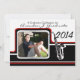 Varsity Stripe com convite para Festa de formatura de Trompete com foto realçada em vermelho. Personalizar para qualquer licenciatura, universidade ou segundo grau. Altere o texto para o ajustado das suas necessidades. Adicionar informações ao convite de retorno também.