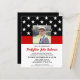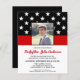 Celebre a sua formatura e convide amigos e familiares para a sua festa de formatura de bombeiros com este convite para a graduação do Thin Red Line Firefighter - design de bandeira americana em cores de bandeira do bombeiro, design angustiado. Personalize com fotos, nome, local de endereço e detalhes de rsvp. Este convite para a graduação do bombeiro pode ser usado para a aposentadoria do bombeiro, simplesmente mude o texto ao personalizar.Veja nossa coleção de presentes, favoritos para festas e suprimentos para a graduação do bombeiro. COPYRIGHT © 2020 Judy Burrows, Black Dog Art - Todos Os Direitos Reservados. Convite Vermelho de Foto para Graduação de Bombeiros de Orçamento