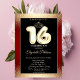 Dourada tiara e dourada confetti em fundo vermelho Sweet 16 convite de aniversário.
