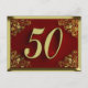 Real decorado com texto dourado e floreios ornamentados nos cantos cartão postal com fundo vermelho escuro para 50 anos de idade. Dependendo do texto inserido pode ser usado como convite ou cartão de cumprimentos.