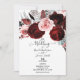 Convite Vermelho Escuro e Verde Folhagem Floral Rosa Branc