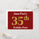Este design de convite apresenta o número normal "35º" com uma aparência falsa em ouro. Também apresenta um nome personalizado e um fundo vermelho. Os detalhes do evento no verso podem ser personalizados. Poderia ser usado para convidar pessoas para a trinta e cinco festas de aniversário de alguém. [~Z0000012]
