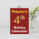 Convite Vermelho, Faux Dourado 4º aniversário Celebração +