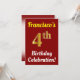 Este design convite de aniversário apresenta uma mensagem como "A 4ª Celebração de Aniversário do Francisco!", onde o nome pode ser personalizado, e onde o número "4º" tem uma aparência falsa de ouro. Ele também apresenta um fundo de cor vermelha. Os detalhes do evento no verso podem ser personalizados. Poderia ser usado para convidar pessoas para a festa ou festa de aniversário de alguém do quarto aniversário. [~Z0000120]