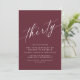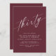 Aniversário de 30 anos moderno convida com um design simples e somente texto. Fonte de caligrafia num fundo vermelho escuro.