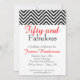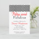 Um grande convite do aniversário para alguma senhora. Caracteriza um teste padrão preto e branco da viga na parte superior do convite. Você personaliza a informação do partido na parte dianteira em preto e no vermelho.